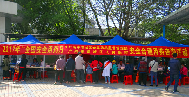 為響應(yīng)國家食品藥品監(jiān)管總局關(guān)于開展“全國安全用藥月活動”的號召,進一步引導(dǎo)公眾關(guān)注藥品安全,提高群眾的安全用藥意識和水平,倡導(dǎo)健康用藥的理念和方式,營造良好的安全合理用藥氛圍,11月1日上午,中山大學(xué)孫逸仙紀念醫(yī)院增城院區(qū)和院本部聯(lián)合廣州市增城區(qū)食藥監(jiān)局在增城院區(qū)門診廣場舉辦了2017年“全國安全用藥月”——安全合理用藥咨詢活動。