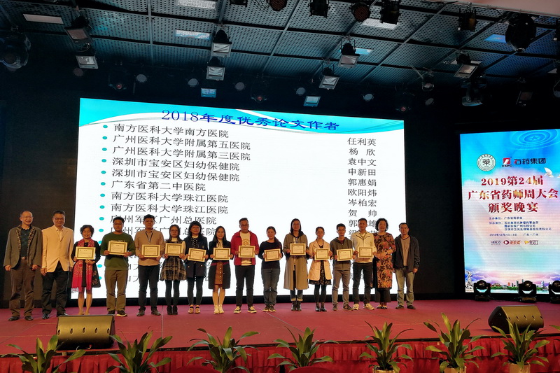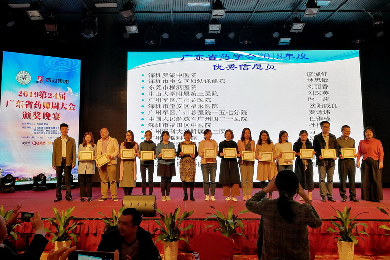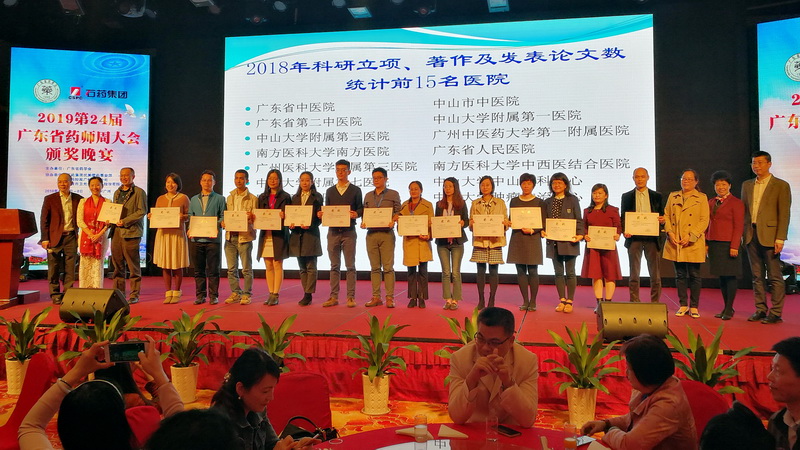 7日晚的頒獎晚會由伍俊妍和黃紅兵2位主任主持。共進(jìn)行了2018年科研立項、著作和發(fā)表論文前15名醫(yī)院、2018廣東省藥學(xué)會醫(yī)院藥學(xué)科學(xué)技術(shù)獎、2019廣東省藥學(xué)會醫(yī)院藥學(xué)研究基金、2018年度廣東省藥學(xué)會優(yōu)秀信息員和2018年度優(yōu)秀論文共5個項目的表彰頒獎。