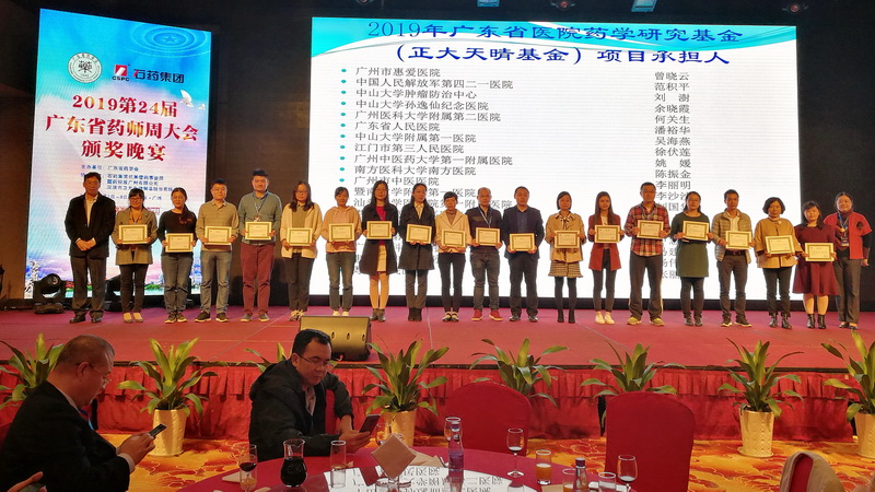 三、陳吉生主任揭曉了“2019廣東省藥學(xué)會醫(yī)院藥學(xué)研究基金(正大天晴基金)”共19項: