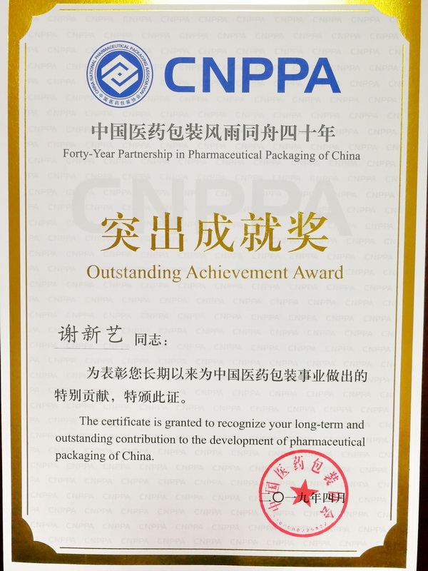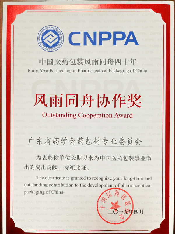 4月26日,在海口召開的中國醫(yī)藥包裝協(xié)會(huì)第十次會(huì)員大會(huì)上,廣東省藥學(xué)會(huì)藥用包裝材料專業(yè)委員會(huì)獲得“風(fēng)雨同舟協(xié)助獎(jiǎng)”,專委會(huì)主任委員謝新藝同志獲得“突出成就獎(jiǎng)”,表彰和鼓勵(lì)廣東同行為中國醫(yī)藥包裝事業(yè)發(fā)展作出的貢獻(xiàn)。