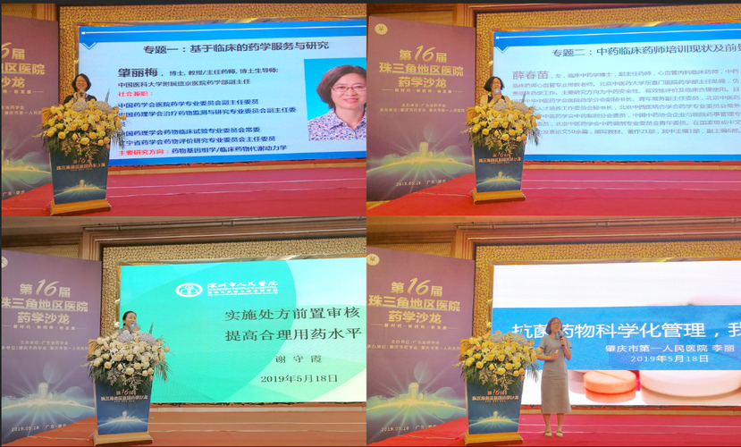 2019年5月18-19日,第16屆珠三角地區(qū)醫(yī)院藥學(xué)沙龍?jiān)谡貞c市隆重舉行。本屆藥學(xué)沙龍由廣東省藥學(xué)會(huì)主辦,肇慶市藥學(xué)會(huì)、肇慶市第一人民醫(yī)院承辦。肇慶市市場(chǎng)監(jiān)督管理局翁卓輝局長(zhǎng)、肇慶市科學(xué)技術(shù)協(xié)會(huì)余飛興書(shū)記、肇慶市衛(wèi)生健康局鐘毅副調(diào)研員、肇慶市藥學(xué)會(huì)陳勇前理事長(zhǎng)、肇慶市醫(yī)學(xué)會(huì)凌芝雄會(huì)長(zhǎng)、肇慶市第一人民醫(yī)院朱文鈿副院長(zhǎng)、國(guó)藥集團(tuán)一致藥業(yè)股份有限公司劉天堯副總經(jīng)理,以及廣東省藥學(xué)會(huì)鄭志華秘書(shū)長(zhǎng)、陳民喜書(shū)記,沙龍發(fā)起人深圳市寶安純中醫(yī)治療醫(yī)院藥學(xué)部學(xué)科帶頭人梅全喜教授等有關(guān)部門(mén)和單位領(lǐng)導(dǎo)以及來(lái)自廣東全省各地市醫(yī)院藥劑科主任及藥學(xué)技術(shù)人員共400多人參加。