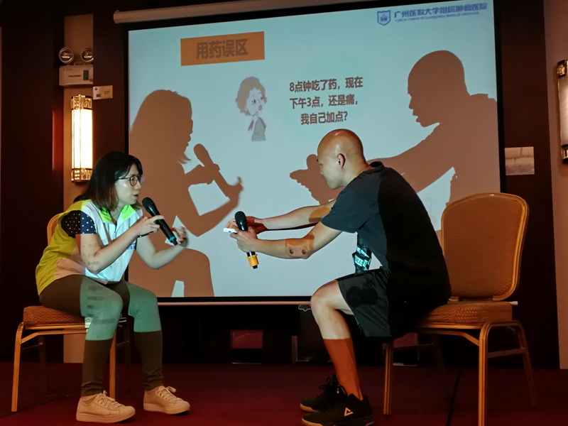 腫瘤用藥分會場以“醫(yī)藥攜手,防癌抗癌”為主題,分上下兩個半場。上半場為專家授課,下半場為腫瘤用藥科普實踐展示。會議由湖南省腫瘤醫(yī)院藥劑科姚敦武主任主持,會議主席中山大學腫瘤防治中心黃紅兵主任作開場致辭,他對今日醫(yī)藥論壇的盛況表示肯定,并對廣東省藥學會的實際工作表示支持;廣東省藥學會陳民喜書記、《今日藥學》雜志社社長在致辭中,闡述了腫瘤防治和合理用藥的重要性,并對到場支持的嘉賓和參會人員表示感謝。中山大學腫瘤防治中心張東生教授作“晚期結直腸癌的治療現(xiàn)狀和研究進展”的報告,從醫(yī)學角度對晚期結直腸癌的防治進行深入剖析;中山大學腫瘤防治中心劉韜副主任作“腫瘤免疫治療藥物的安全使用”的報告,從藥學角度對腫瘤免疫治療藥物的使用進行詳細講解。短暫茶歇后,下半場由廣西醫(yī)科大學附屬腫瘤醫(yī)院梁寧生教授主持。廣州醫(yī)科大學附屬腫瘤醫(yī)院、湖南省腫瘤醫(yī)院、廣西醫(yī)科大學附屬腫瘤醫(yī)院、中山大學腫瘤防治中心、中國醫(yī)學科學院腫瘤醫(yī)院深圳醫(yī)院的藥師們分別上臺展示腫瘤相關藥物的合理使用規(guī)范和注意事項。展示內容豐富多彩,生動活潑,形式多樣,既有小品、演講,也有沙畫、漫畫、視頻等,演示者的講解通俗易懂,獲得在場參會人員的陣陣掌聲。專家們對各醫(yī)院團隊的展示內容進行點評,提出了一些完善意見。