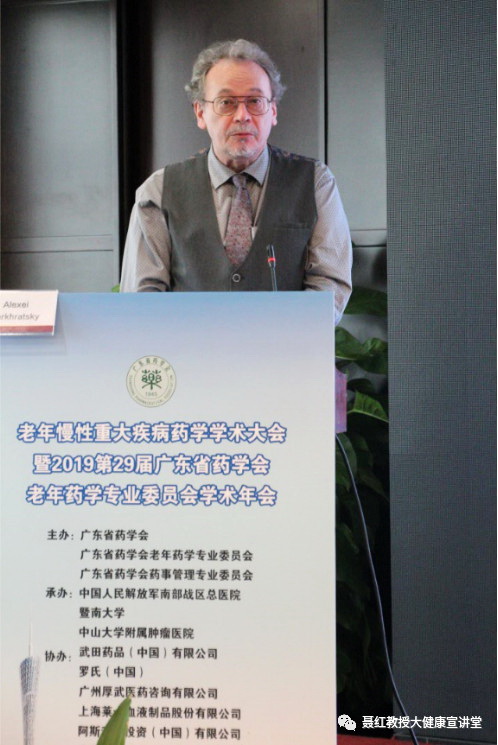 Alexei Verkhratsky博士是歐洲科學(xué)院院士(2003)、西班牙皇家科學(xué)院院士(2012)、德國(guó)科學(xué)院院士(2013)、波蘭科學(xué)院院士(2017),現(xiàn)為英國(guó)曼徹斯特大學(xué)生物科學(xué)院神經(jīng)生理學(xué)教授,歐洲科學(xué)院生命科學(xué)和醫(yī)學(xué)分部主席,美國(guó)神經(jīng)科學(xué)學(xué)會(huì)委員,并擔(dān)任Cell Calcium、Neuroglia主編,Cell Death & Disease副主編,Pflugers Archiv, Glia, Purinergic Signalling, ASN Neuro &c等雜志編委。Alexei Verkhratsky院士在大會(huì)上作了題為“衰老與阿爾茲海默癥中的星形膠質(zhì)細(xì)胞”的講座報(bào)告,報(bào)告由暨南大學(xué)藥學(xué)院聶紅教授任翻譯。