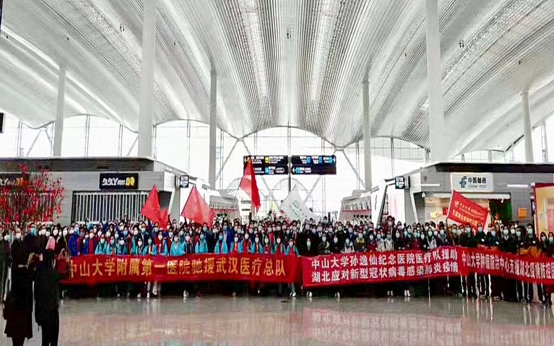 2月7日下午,中山大學(xué)附屬第一醫(yī)院、中山大學(xué)孫逸仙紀(jì)念醫(yī)院、中山大學(xué)腫瘤防治中心、廣州醫(yī)科大學(xué)附屬第一醫(yī)院、廣州醫(yī)科大學(xué)附屬第二醫(yī)院、廣州醫(yī)科大學(xué)附屬第三醫(yī)院、廣州醫(yī)科大學(xué)附屬腫瘤醫(yī)院、廣東藥科大學(xué)附屬第一醫(yī)院等廣州及佛山地區(qū)部分醫(yī)院派出312名醫(yī)護(hù)人員組成醫(yī)療隊(duì)出發(fā)前往武漢支援。其中,中山大學(xué)附屬第一醫(yī)院、中山大學(xué)孫逸仙紀(jì)念醫(yī)院各派出131名醫(yī)護(hù)人員。