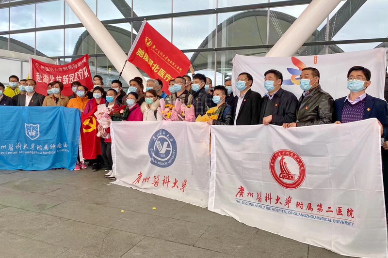 2月7日,廣州醫(yī)科大學(xué)附屬第一醫(yī)院、第二醫(yī)院、腫瘤醫(yī)院誓師出征