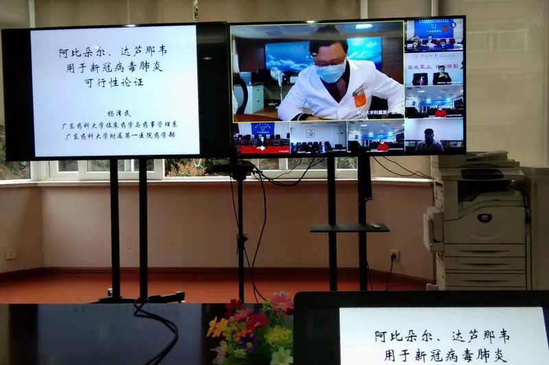 2020年2月6日深夜,受廣東省衛(wèi)生健康委的委派,楊澤民教授組織了以黨員同志為主的臨床藥學重點學科和高水平臨床藥學重點??迫藛T進行“阿比朵爾、達蘆那韋用于新型冠狀病毒肺炎可行性論證”討論會,經(jīng)過專業(yè)的論證,提出“阿比朵爾可試用于高危人群的預防和在嚴格觀察下試用于危重患者的治療”,得到各位專家和廣東省衛(wèi)健委相關領導的認同。