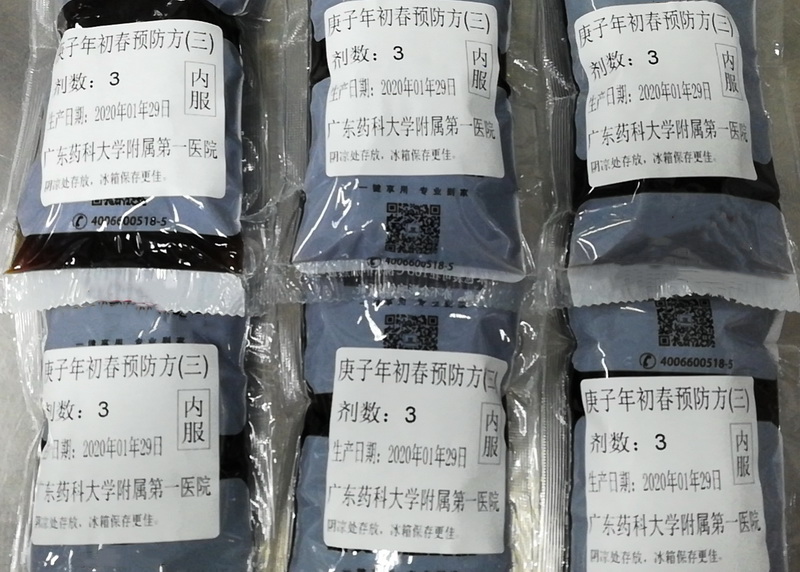 針對當前的疫情形勢,結合嶺南氣候、水土、飲食、人文等特點,為了加強防護,提高本院職工的抵抗力,經(jīng)藥學部、醫(yī)務部、中醫(yī)科牽頭和協(xié)作,按照中醫(yī)科洪敏主任的經(jīng)驗方,決定對本院職工免費派發(fā)“庚子年初春預防方”和“辟瘟囊”,中藥房積極協(xié)調(diào)制備,從1月28日開始至今,大量發(fā)放湯劑和辟瘟囊供院內(nèi)有需要的職工領用,得到廣泛好評。