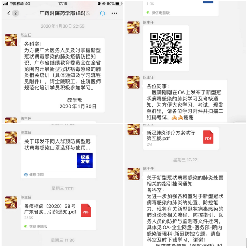 陳吉生主任時刻根據(jù)國家、省委、院黨委各項決策部署,組織全科室人員學習新型冠狀病毒肺炎防控相關培訓。利用微信群組織科室全體人員學習《新型冠狀病毒肺炎相關培訓》、《新型冠狀病毒感染的肺炎醫(yī)務人員防控》、《新型冠狀病毒感染的肺炎口罩使用指引》及各版本《新型冠狀病毒感染的肺炎診療方案(試行)》等,并進行相關考核。