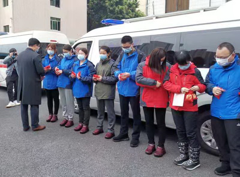 院領(lǐng)導(dǎo)給援助湖北荊州醫(yī)療隊(duì)的白衣勇士們贈送防疫香囊