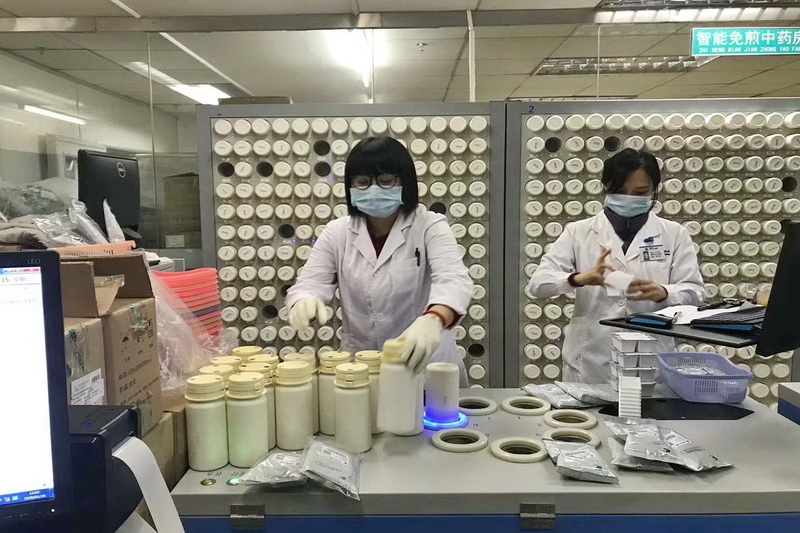 中藥房為赴武漢醫(yī)療隊(duì)調(diào)配中藥免煎顆粒