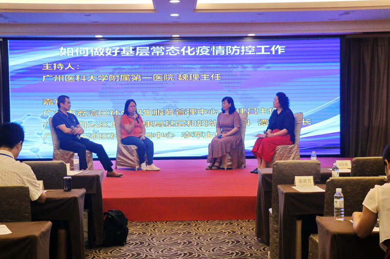 2、白云區(qū)&黃埔區(qū)分盟分會場:由廣州市黃埔區(qū)云埔街社區(qū)衛(wèi)生服務中心主任金波和廣州市白云區(qū)均禾街社區(qū)衛(wèi)生服務中心主任戴俊琳主持;分別由社區(qū)聯(lián)盟黃埔區(qū)分盟秘書長金波和社區(qū)聯(lián)盟白云區(qū)分盟副秘書長梁蓓堃做分盟報告;學術交流包括:黃埔區(qū)夏港街社區(qū)衛(wèi)生服務中心主任丁明--《疫情防控常態(tài)化背景下的慢性病健康管理》;白云區(qū)鶴龍街社區(qū)衛(wèi)生服務中心主任謝滿容--《后疫情時代呼吸疾病基層防診治能力的反思與探索》;黃埔區(qū)黃埔街社區(qū)衛(wèi)生服務中心主任李皓--《關于在新冠疫情常態(tài)化防控下做好社區(qū)慢病管理的幾點思考》;白云區(qū)新市街社區(qū)衛(wèi)生服務中心黃健忠--《抗疫常態(tài)化結合到居民健康管理的思考和倡議》。會議最后安排了《后新冠疫情下的社區(qū)醫(yī)院慢病管理》為題的討論互動。