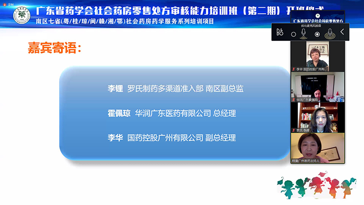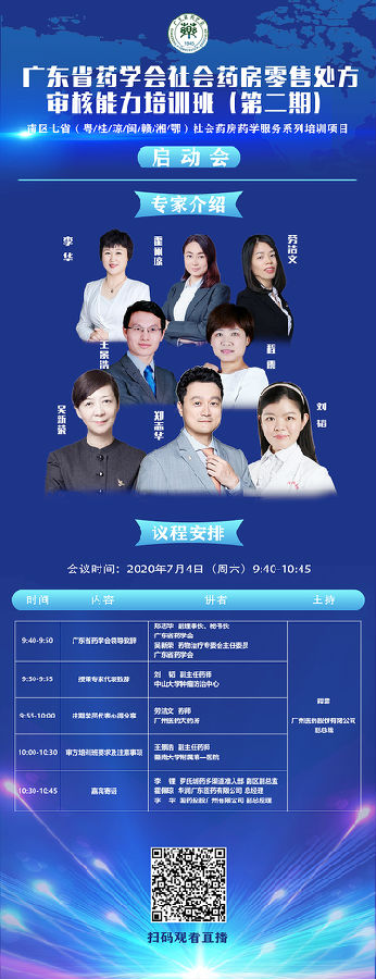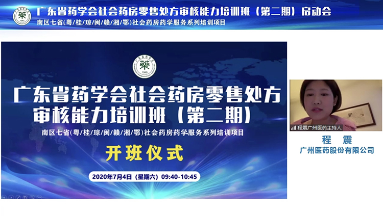 為加強社會藥房一線藥師的處方審核專業(yè)技能,推進社會藥房的發(fā)展,更好地服務(wù)于廣大患者,2020年7月4日,由廣東省藥學(xué)會主辦、上海羅氏制藥有限公司、廣州醫(yī)藥大藥房有限公司、國藥控股廣州有限公司、廣東德信行大藥房連鎖有限公司聯(lián)合協(xié)辦的“廣東省藥學(xué)會社會藥房零售處方審核能力培訓(xùn)班(第二期)”正式開班。開班儀式由廣州醫(yī)藥股份有限公司副總裁程震主持。整場會議直播過程氣氛熱烈,受到廣泛關(guān)注,共計1000多人次上線參與觀看。
