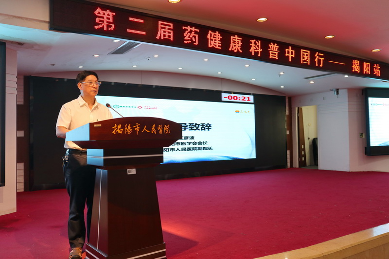 揭陽市醫(yī)學會會長、揭陽市人民醫(yī)院王彥波副院長應邀蒞臨并致辭。王彥波副院長說:隨著國家醫(yī)藥衛(wèi)生體制改革的不斷推進,藥學服務已經成為臨床診療過程中不可或缺的重要組成部分。安全用藥、合理用藥的知識宣教任重道遠,希望廣大藥師積極普及大眾安全用藥常識,給每一位患者提供最優(yōu)的藥事服務,體現(xiàn)藥師職業(yè)價值,為我國人民生命健康事業(yè)做出應有的貢獻。