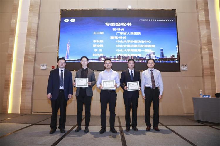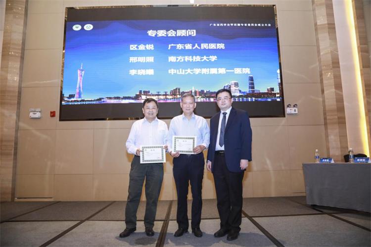 廣東省藥學(xué)會(huì)副理事長(zhǎng)兼秘書長(zhǎng)鄭志華教授為主任委員頒發(fā)聘書