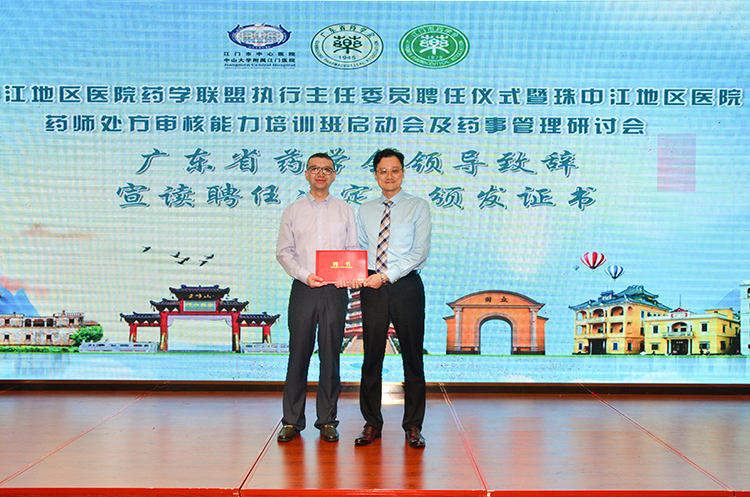 廣東省藥學(xué)會珠中江地區(qū)醫(yī)院藥學(xué)聯(lián)盟執(zhí)行主任委員聘任儀式暨珠中江地區(qū)醫(yī)院藥師處方審核能力培訓(xùn)班啟動會及藥事管理研討會在江門隆重召開