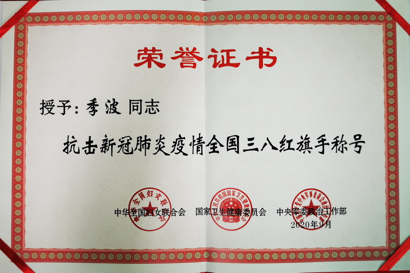 熱烈祝賀季波主任榮獲全國三八紅旗手光榮稱號