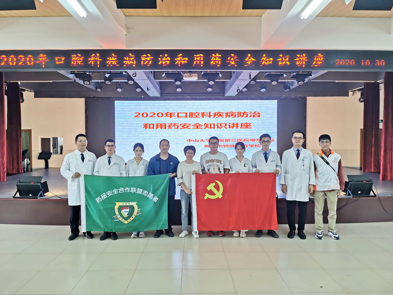 2020年是第32個(gè)“全國(guó)愛(ài)牙日”,為貫徹《“健康中國(guó)2030”規(guī)劃綱要》及《國(guó)務(wù)院關(guān)于健康中國(guó)行動(dòng)的意見》要求,細(xì)化落實(shí)國(guó)務(wù)院關(guān)于實(shí)施健康中國(guó)行動(dòng)之健康知識(shí)普及行動(dòng)意見,推動(dòng)我國(guó)健康事業(yè)的發(fā)展,開展學(xué)生健康危害因素監(jiān)測(cè)與評(píng)價(jià),加強(qiáng)學(xué)生近視、齲齒、肥胖等常見病防治工作。中山大學(xué)附屬第三醫(yī)院粵東醫(yī)院(以下簡(jiǎn)稱粵東醫(yī)院)藥劑科聯(lián)合口腔科志愿者一行7人于2020年10月30日下午在梅州市特殊教育學(xué)校開展了2020年“口腔健康,全身健康,特殊兒童,特殊關(guān)愛(ài)”為主題的義診和安全用藥進(jìn)校園科普活動(dòng)。本次活動(dòng)分為科普授課和口腔檢查兩個(gè)環(huán)節(jié),吸引了梅州市特殊教育學(xué)校所有師生共200余人參加?;洊|醫(yī)院藥劑科麥海燕、吳志輝、葉豪3人參加。