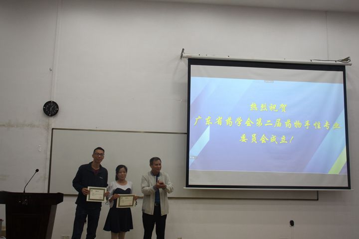 藥物手性專委會學(xué)術(shù)年會學(xué)術(shù)報告結(jié)束后,隨之進行的是廣東省藥學(xué)會第二屆藥物手性專業(yè)委員會成立大會。會議開幕式由暨南大學(xué)高昊教授主持,主任委員章偉光教授作首屆專委會工作總結(jié)報告,然后由廣東省藥學(xué)會鄭志華副理事長兼秘書長發(fā)表講話,他充分肯定了第一屆藥物手性專業(yè)委員會取得的成績并向廣東省藥學(xué)會第二屆藥物手性專業(yè)委員會成立表示熱烈祝賀。最后宣讀了關(guān)于第二屆藥物手性專業(yè)委員會名單,并向連任的主任委員章偉光同志頒發(fā)聘書。隨后,主任委員章偉光教授向參會的副主任委員、秘書和委員頒發(fā)聘書,并針對第二屆藥物手性專業(yè)委員作工作計劃報告,同時對蒞臨的領(lǐng)導(dǎo)及參會專家表示誠摯的感謝!