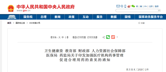 《關(guān)于印發(fā)加強(qiáng)醫(yī)療機(jī)構(gòu)藥事管理、促進(jìn)合理用藥的意見的通知》
