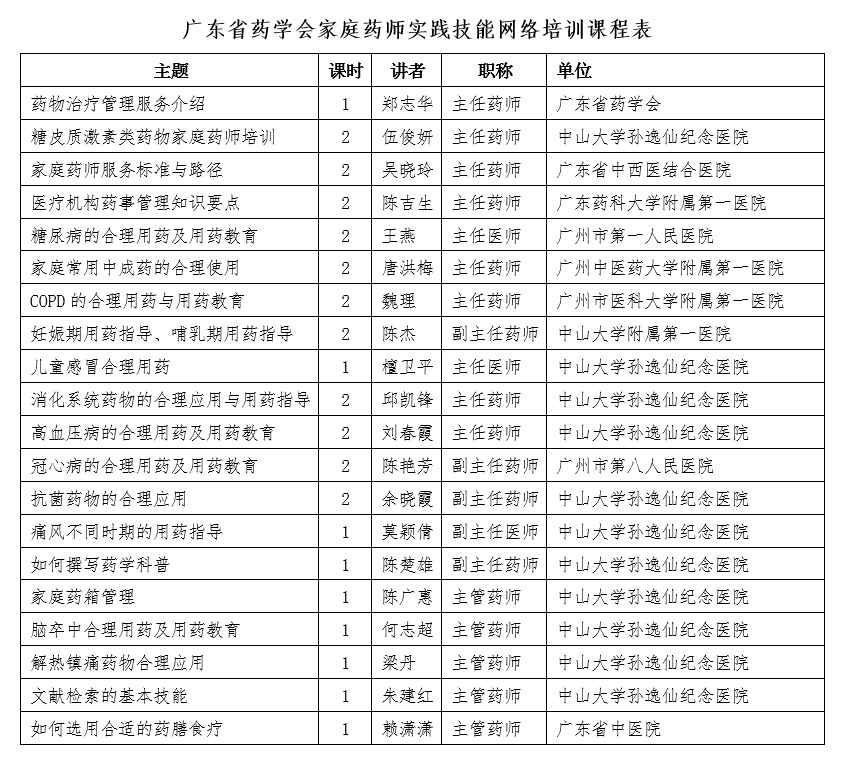 《廣東省藥學(xué)會(huì)家庭藥師實(shí)踐技能網(wǎng)絡(luò)培訓(xùn)》開課!
