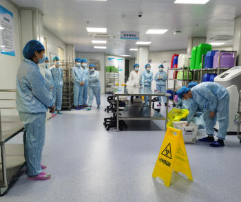 當(dāng)天早上七點(diǎn)半,在主管院長(zhǎng)張遠(yuǎn)起副院長(zhǎng)、藥學(xué)部林志繡部長(zhǎng)、靜配中心負(fù)責(zé)人謝麗明等人的陪同下,專家們來到評(píng)估現(xiàn)場(chǎng),先查看靜配中心周圍環(huán)境及采風(fēng)口位置。然后在我院靜配中心負(fù)責(zé)人的指引下,按照我院靜配中心著裝管理要求,進(jìn)行更衣、換鞋、戴帽后,即開展評(píng)估工作,現(xiàn)場(chǎng)查看工作流程及各方面的操作情況。三位專家首先進(jìn)入普通藥品調(diào)配間,查看調(diào)配人員的無菌規(guī)范操作情況;再進(jìn)入危害藥品調(diào)配間,根據(jù)危害藥品調(diào)配規(guī)范,檢查調(diào)配過程及個(gè)人防護(hù);緊接著在成品輸液核對(duì)區(qū),檢查成品輸液的復(fù)核流程及質(zhì)量情況,了解自動(dòng)化設(shè)備的運(yùn)行情況;來到清洗間檢查各種用具的清洗消毒規(guī)程;在審方室考評(píng)了審方藥師的日常工作、醫(yī)囑審核軟件及標(biāo)簽設(shè)計(jì)等?,F(xiàn)場(chǎng)檢查工作完成后,即開始對(duì)文件資料的查看,對(duì)各項(xiàng)規(guī)章制度、操作規(guī)程、應(yīng)急預(yù)案、質(zhì)量持續(xù)改進(jìn)等內(nèi)容逐一審查,期間隨機(jī)抽查工作人員進(jìn)行現(xiàn)場(chǎng)提問及進(jìn)行細(xì)胞毒藥物溢出處理演練。