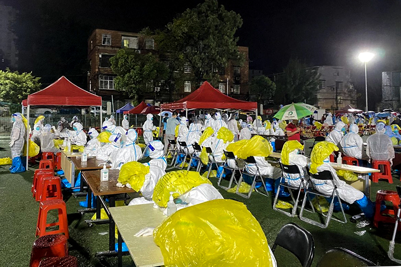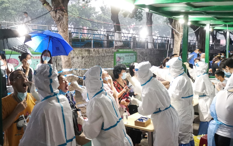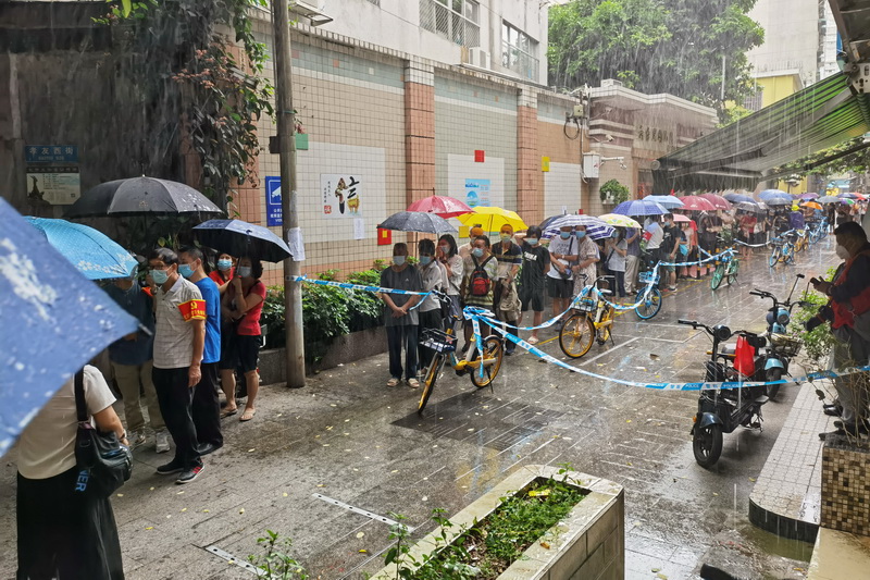 26日,荔灣全區(qū)22條街道共設(shè)置了138個(gè)核酸檢測點(diǎn),對所屬123.83萬戶籍人口、暫住人口開展全員核酸檢測。除荔灣社區(qū)投入醫(yī)護(hù)人員2400人力量外,省、市衛(wèi)健委調(diào)動(dòng)省市屬醫(yī)療力量和兄弟區(qū)醫(yī)療力量共2500人前往支援。此外,還有數(shù)千名警務(wù)人員和志愿者加入。從26日中午12點(diǎn)接到全員檢測通知,荔灣區(qū)各部門、各方人員緊急行動(dòng),四個(gè)小時(shí)即完成了指揮部設(shè)置、應(yīng)急機(jī)制啟動(dòng)、流程設(shè)計(jì)、選址、物資準(zhǔn)備、工作分工、分區(qū)發(fā)動(dòng)、宣傳引導(dǎo)、采樣對接等各個(gè)環(huán)節(jié)并啟動(dòng)工作,到當(dāng)天夜里十二點(diǎn)半,檢測量基本達(dá)到常住人口的90%,強(qiáng)度之大、效率之高,令人敬佩!