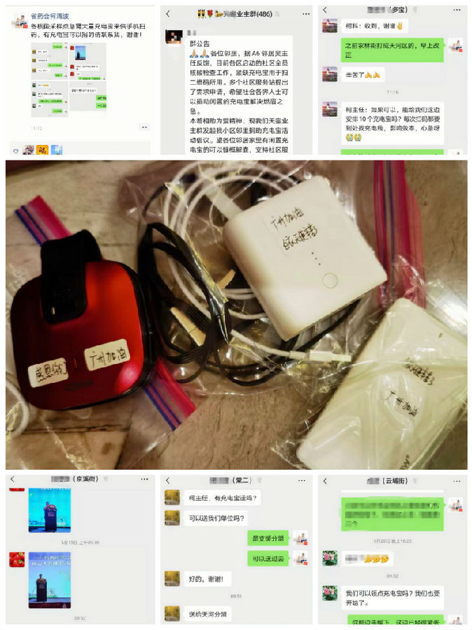 柯涌波馬上將這一信息在學(xué)會(huì)工作群內(nèi)發(fā)出、征集,立即得到回應(yīng),有單位庫存的、有個(gè)人富余的、有馬上去商店購買的、有發(fā)動(dòng)小區(qū)征集的,不到3小時(shí),征集到充電寶400多個(gè),并且都充滿了電!--里面充的可不僅僅是電量,而是滿滿的正能量,滿滿的愛心!