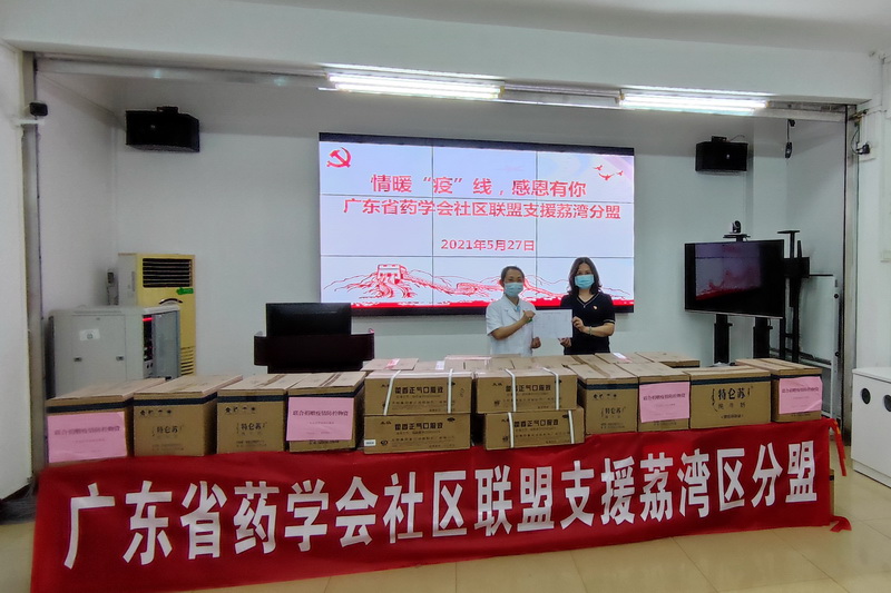 5月26日晚上,得知荔灣前線醫(yī)務(wù)人員的工作、生活需求后,通過電話發(fā)動(dòng)各社會(huì)力量,出錢出物,由學(xué)會(huì)統(tǒng)一收集后送達(dá)。27日,廣東省藥學(xué)會(huì)副理事長兼秘書長鄭志華和社區(qū)聯(lián)盟副主任委員范育玲主任親自將籌集到的款項(xiàng)和物資送往“前線”--荔灣區(qū)華林街社區(qū)衛(wèi)生服務(wù)中心,交給社區(qū)聯(lián)盟副主任委員李美婷主任,分發(fā)給荔灣區(qū)各相關(guān)社區(qū)醫(yī)院,表達(dá)廣東省藥學(xué)會(huì)以及相關(guān)熱心企業(yè)的愛心!鄭志華還攜同王勇、柯涌波代表廣東省藥學(xué)會(huì)黨支部對荔灣社區(qū)抗疫工作表示慰問。