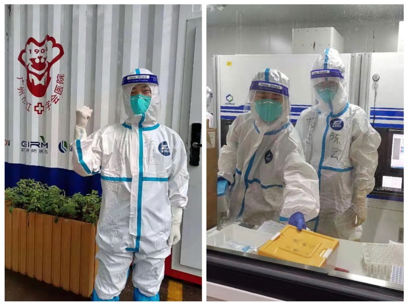 6月1日,市紅會(huì)醫(yī)院檢驗(yàn)科核酸檢測(cè)任務(wù)倍增,藥學(xué)部第一時(shí)間派出了具有臨床基因擴(kuò)增檢驗(yàn)技術(shù)資質(zhì)的陳旺、陳云兩名藥師,全天候輪流支援檢驗(yàn)科方艙實(shí)驗(yàn)室PCR核酸檢測(cè)工作。