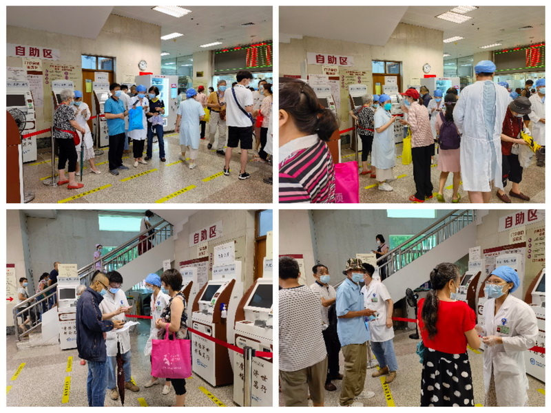 6月4日早上7點(diǎn)零6分,藥學(xué)部接到醫(yī)院緊急通知:因新冠疫情防控需要,6月4日門(mén)診停診一天,只接受已預(yù)約患者看病就診,急診僅提供搶救等有限服務(wù)。藥學(xué)部立刻組織召開(kāi)部門(mén)組長(zhǎng)緊急電話會(huì)議,進(jìn)行任務(wù)安排:臨床藥學(xué)、藥庫(kù)、門(mén)診西藥房等部門(mén)立即抽調(diào)人員,與研究生一起援助門(mén)診部、協(xié)助門(mén)診部科學(xué)劃分出入口區(qū)域,引導(dǎo)已掛號(hào)預(yù)約當(dāng)天就診的患者有序就醫(yī),幫助未掛號(hào)的年長(zhǎng)患者進(jìn)行手機(jī)線上其它日期的預(yù)約掛號(hào);同時(shí),維持西藥房取藥病患的秩序,并為病患解答有關(guān)健康碼、防疫制度政策、核酸檢測(cè)、疫苗接種等方面問(wèn)題。