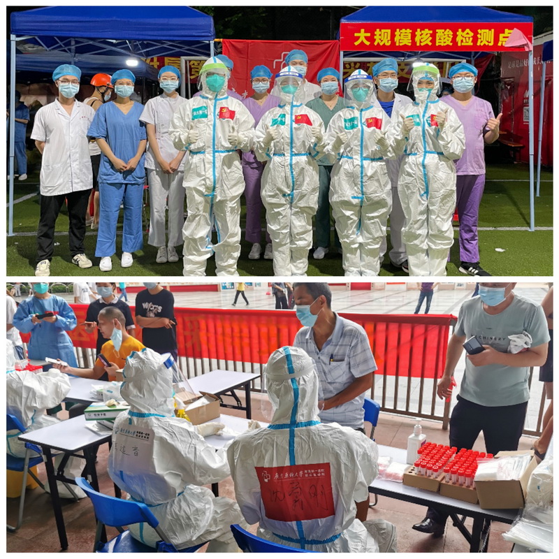核酸采樣必須在通風(fēng)透氣的地方,加之近期廣州天氣多變,酷暑、暴雨、密不透風(fēng)的防護服,給工作人員無端增添了難以想象的困難。一輪工作下來時,身上的衣服都被汗水濕透;但經(jīng)過短暫的修整后,面對現(xiàn)場等待核酸檢測的群眾,二話不說還要繼續(xù)投入工作。一個小時、兩個小時······幾個小時,大家都堅守崗位,規(guī)范各項操作。每天結(jié)束工作后往往已是深夜,但大家拖著疲憊的身軀互道辛苦后,仍積極報名參加第二天的核酸采樣工作,其中有幾位藥師先后共參與過5次,令人感動。
