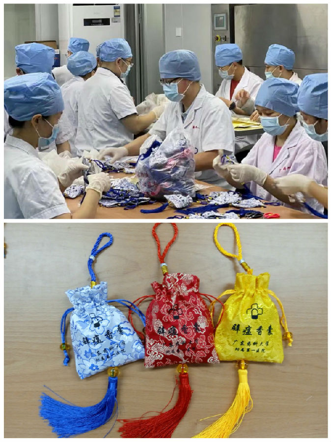 除了核酸采樣工作,藥學(xué)部黨支部利用中醫(yī)在防控瘟疫方面的優(yōu)勢和藥學(xué)人員豐富的中藥學(xué)知識、經(jīng)驗,于5月29日組織15名黨員、藥師利用周末時間緊急制作抗疫香囊。在時間緊、任務(wù)重、沒有機械化生產(chǎn)設(shè)備的條件下,藥學(xué)部支部書記陳永合理分配任務(wù),保證了各項工作有序進行,在最短時間內(nèi)制作完成了500多個香囊并送至前線需要的人員手中,從另一方面支援抗疫戰(zhàn)場。