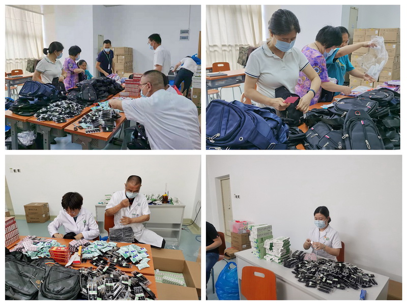 沒上一線的藥師也在積極為抗擊疫情做著力所能及的工作。由于深圳近期氣溫高、暴雨頻密,天氣濕熱,他們特意準備了1000份“防暑降溫愛心包”,送給“前線”醫(yī)務人員。