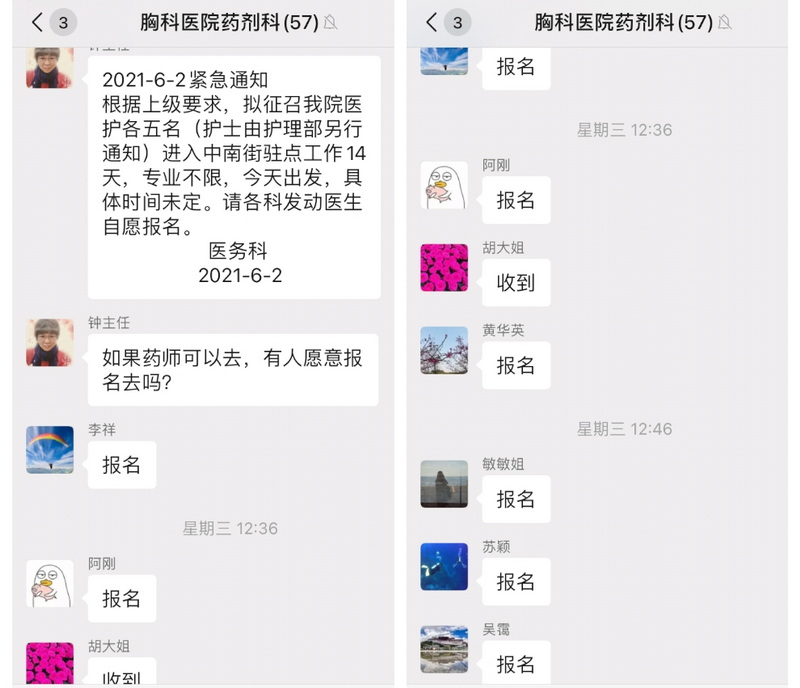 藥劑科積極響應(yīng)醫(yī)院號(hào)召,落實(shí)全員考核咽拭子采集操作和個(gè)人防護(hù)服穿脫,確保每位藥師都熟練掌握,做好隨時(shí)出戰(zhàn)準(zhǔn)備。6月2日,根據(jù)市通知要求,譚志欣藥師主動(dòng)報(bào)名加入醫(yī)院抗疫隊(duì)伍,進(jìn)駐高風(fēng)險(xiǎn)地區(qū)--荔灣區(qū)中南街,連續(xù)作戰(zhàn)14天。何錦文藥師負(fù)責(zé)醫(yī)院疫苗的驗(yàn)收入庫(kù)、轉(zhuǎn)運(yùn)、分發(fā)和回收等重要工作,經(jīng)常凌晨執(zhí)行驗(yàn)收任務(wù);24小時(shí)在線,隨時(shí)聽候召喚。另派出5名藥師多次參與白云區(qū)、荔灣區(qū)、黃埔區(qū)核酸采集工作,6名藥師利用下班休息時(shí)間擔(dān)當(dāng)疫情防控志愿者。