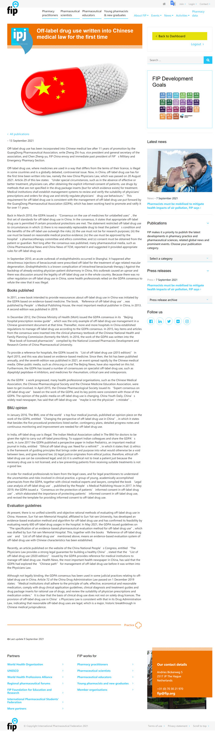 廣東省藥學(xué)會(以下簡稱“本會”)持續(xù)11年推動的規(guī)范超說明書用藥工作2021年8月20日被寫入新版《醫(yī)師法》。2021年9月13日,國際藥學(xué)聯(lián)合會(FIP)官刊《國際藥學(xué)雜志》(IPJ)發(fā)布本會超說明書用藥規(guī)范管理工作成果。FIP對本會相關(guān)工作非常重視,收到文章后迅速處理并發(fā)布,從投稿到修回到發(fā)表僅僅用了15天的時間。IPJ雜志是FIP的唯一的官方刊物(其他雜志都是純學(xué)術(shù)性的),1912年FIP正式注冊成立時就已是其正式官方刊物。FIP主席Dominique Jordan先生、首席執(zhí)行官Catherine Duggan女士、首席運(yùn)營官Carola van der Hoeff女士對這項工作高度肯定,Catherine Duggan女士對這篇文章的評價是:"The information will be super valuable for pharmacists in China and beyond."(這個信息對中國乃至全球的藥師來說,都非常有價值,意義重大。)