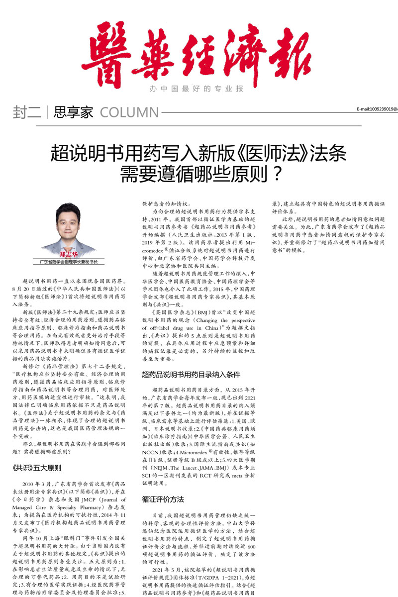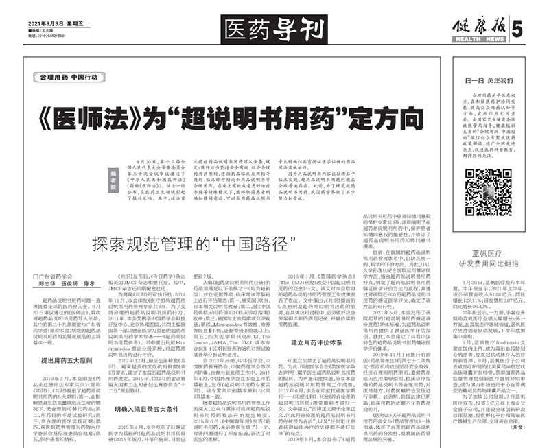 詳情請見鏈接——廣東省藥學(xué)會持續(xù)11年推動的規(guī)范超說明書用藥工作被寫入新版《醫(yī)師法》: