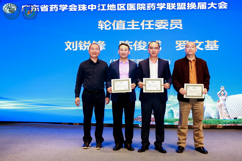 廣東省藥學(xué)會珠中江醫(yī)院藥學(xué)聯(lián)盟于2018年正式成立,采用同時聘任三位輪值主任委員,珠海、中山、江門各一位,每位主任委員執(zhí)行期一年的聘任方式。第一屆輪值主任委員為中山大學(xué)附屬第五醫(yī)院田琳副院長、中山市人民醫(yī)院李運景主任和江門市中心醫(yī)院伍煒培主任。換屆儀式上,由伍煒培主任代表第一屆聯(lián)盟做工作報告。廣東省藥學(xué)會書記、執(zhí)行秘書長陳民喜宣讀專委會換屆、任職文件。第二屆聯(lián)盟設(shè)輪值主任委員3名、副主任委員6名、常務(wù)委員44名、委員108名、秘書(兼)3名。輪值主任委員為羅文基、劉銳鋒、陳俊威主任,副主任委員為文炳均、李雁玲、鄒劍成、羅玉鴻、黃亮、彭偉文主任,聯(lián)盟聘請李運景主任為名譽主任委員,聘請陳孝、伍煒培主任為顧問。