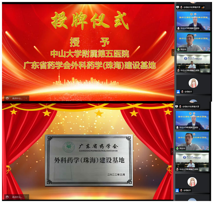 開班儀式后舉辦了授牌儀式,授予中山大學(xué)附屬第五醫(yī)院外科藥學(xué)(珠海)建設(shè)基地。廣東省藥學(xué)會(huì)副理事長(zhǎng)兼秘書長(zhǎng)鄭志華表示,希望中山大學(xué)附屬第五醫(yī)院再接再厲,在外科藥學(xué)工作上積極進(jìn)取,做出更多有成效的工作。