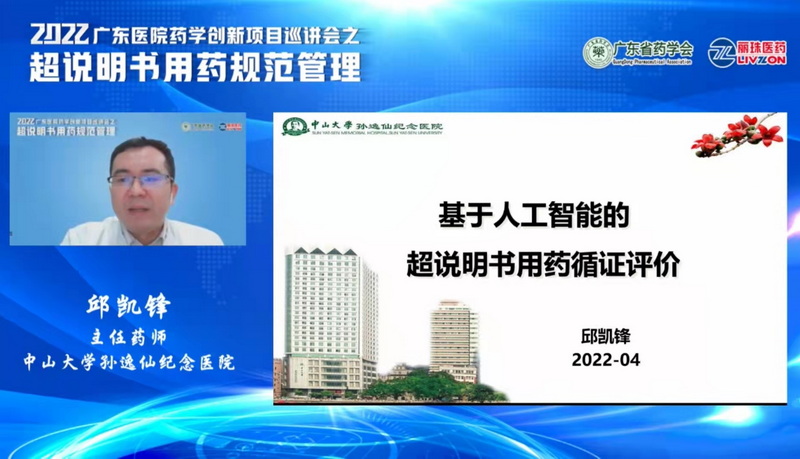 為助力醫(yī)院藥學(xué)工作的轉(zhuǎn)型發(fā)展,廣東省藥學(xué)會2022年設(shè)立“《今日藥學(xué)》論壇——廣東醫(yī)院藥學(xué)創(chuàng)新項目巡講會”,就以超說明書用藥規(guī)范作為首次巡講,在線上舉辦。由于超說明書用藥的循證決策要耗費大量的時間和精力,本次巡講介紹了基于人工智能化的超說明書用藥循證決策;由于超說明書用藥在腫瘤科非常常見,本次巡講還介紹了腫瘤領(lǐng)域的超說明書用藥,分別由中山大學(xué)孫逸仙紀(jì)念醫(yī)院邱凱鋒主任藥師和中山大學(xué)附屬腫瘤醫(yī)院劉韜主任藥師主講。除廣東外,會議還邀請了江蘇、山東、福建等地的醫(yī)院藥學(xué)專家參與交流分享。本次線上會在線觀看 7640 人次,參與討論471人次,點贊人數(shù)達(dá)4786 次。
