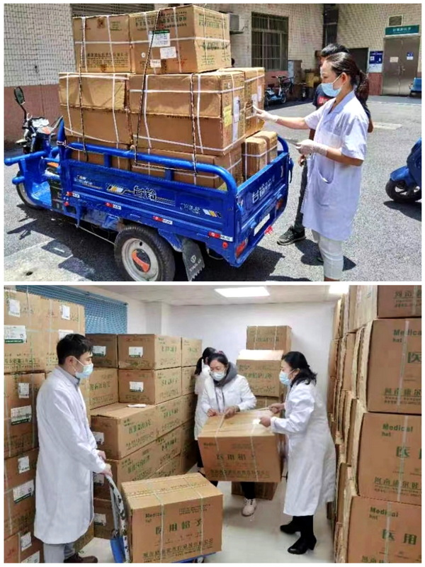截止4月18日,器械庫(kù)為醫(yī)院臨床科室及醫(yī)療隊(duì)發(fā)放輸送防護(hù)服930 多件、醫(yī)用外科口罩25.1萬(wàn)多個(gè)、一次性醫(yī)用檢查手套 453箱、醫(yī)用帽子 4.7萬(wàn)多個(gè);為醫(yī)療隊(duì)發(fā)放及輸送防護(hù)物資共4批次。同時(shí)試劑庫(kù)和器械庫(kù)根據(jù)醫(yī)院指揮部和藥學(xué)部指示,儲(chǔ)備防疫物資3個(gè)月使用量,確保醫(yī)院防疫藥品、物資和試劑的保障供應(yīng)。