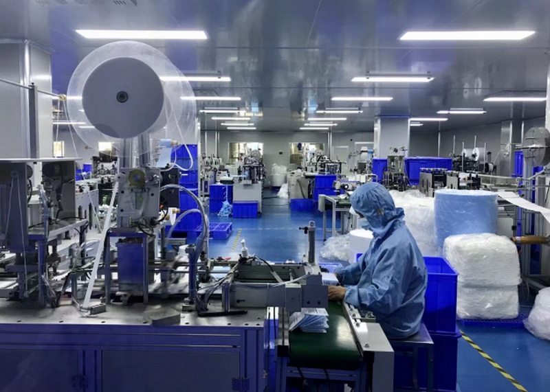 目前,公司主要生產(chǎn)醫(yī)用口罩、防護(hù)服、面罩、隔離衣、防霧鏡片等一系列防疫物資,嚴(yán)格按照國(guó)家醫(yī)療器械標(biāo)準(zhǔn)和質(zhì)量管理規(guī)范組織生產(chǎn),品種齊全、質(zhì)量安全、保障供給。還具備生產(chǎn)熔噴布和無(wú)紡布的能力。公司目前每天可生產(chǎn)無(wú)紡布3噸和熔噴布1噸左右,確保滿(mǎn)足生產(chǎn)100萬(wàn)只口罩的需要。