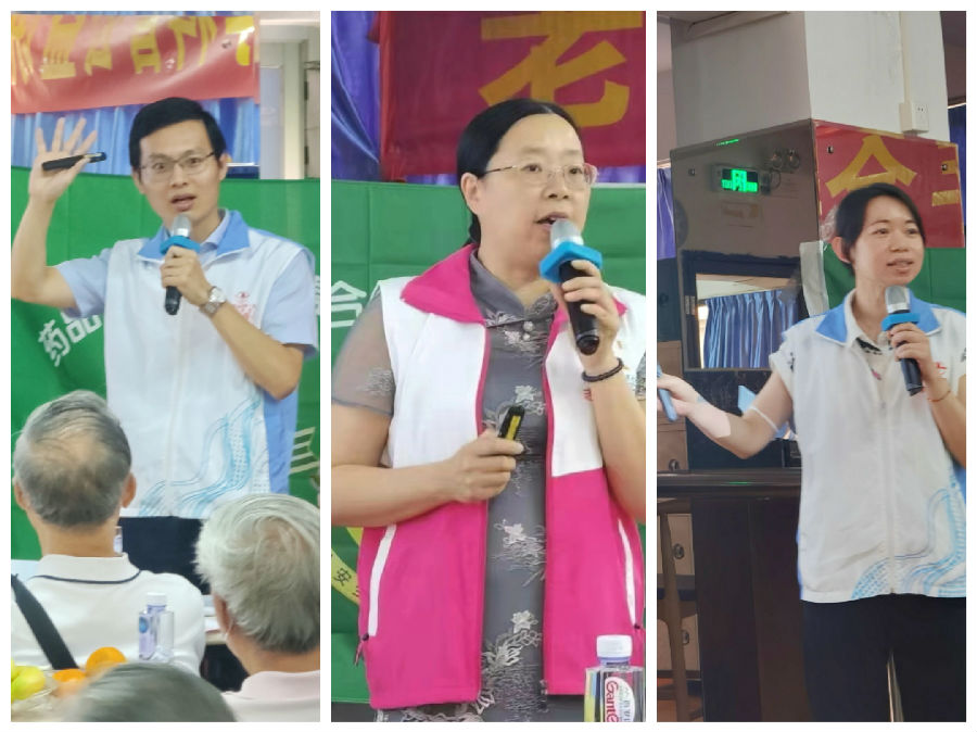 吳新榮總站長(zhǎng)、鄭小飛副院長(zhǎng)及謝明天處長(zhǎng)為本次活動(dòng)致辭。吳總站長(zhǎng)詳細(xì)介紹了老年合理用藥大學(xué)項(xiàng)目的詳細(xì)背景和意義,并高度評(píng)價(jià)了PSM暨南大學(xué)附屬第一醫(yī)院分站在合理用藥科普方面的積極工作。鄭小飛副院長(zhǎng)表示,暨南大學(xué)附屬第一醫(yī)院積極響應(yīng)習(xí)總書記關(guān)于科普的“雙翼理論”精神,全力支持PSM暨南大學(xué)附屬第一醫(yī)院分站推動(dòng)合理用藥科普相關(guān)工作,并期望PSM分站在廣東總站帶領(lǐng)下,借助創(chuàng)建省級(jí)青年文明號(hào)契機(jī),為大學(xué)離退休干部及其他社區(qū)群眾提供更多的優(yōu)質(zhì)藥學(xué)服務(wù)。謝明天處長(zhǎng)對(duì)PSM暨南大學(xué)附屬第一醫(yī)院分站積極開展用藥科普活動(dòng)表示感謝,并期望PSM分站能繼續(xù)開展相關(guān)系列活動(dòng)、特別是居家藥學(xué)服務(wù),擴(kuò)大對(duì)離退休干部的服務(wù)范圍,保障離退休干部的用藥安全。