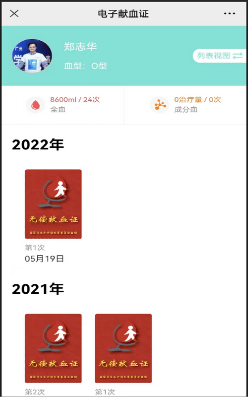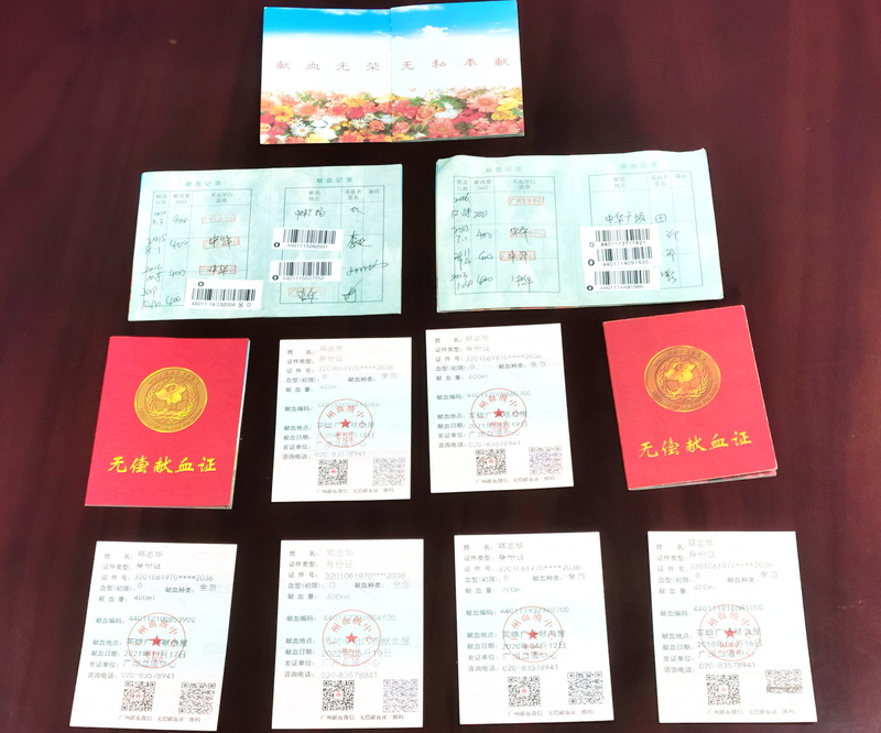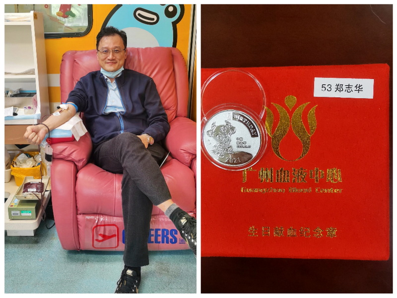 鄭志華同志自2001年開始第一次無償獻(xiàn)血以來,至今已連續(xù)獻(xiàn)血20年,從最先每年1次、每次200毫升到近五年來每年2次分上、下半年,每次400毫升,從未間斷,已先后共無償獻(xiàn)血24次,累計(jì)獻(xiàn)血總量達(dá)8600毫升。等于將全身生命之源的血液無償獻(xiàn)出2輪。真正的熱血奉獻(xiàn)、不計(jì)回報(bào),其精神令人欽佩!其中2021年11月17日,在他生日的當(dāng)天還前往中華廣場獻(xiàn)血點(diǎn)獻(xiàn)出400毫升,并獲贈銀質(zhì)紀(jì)念章。在他的影響下,廣東省藥學(xué)會秘書處半數(shù)以上人員也都踴躍參與無償獻(xiàn)血公益事業(yè)。