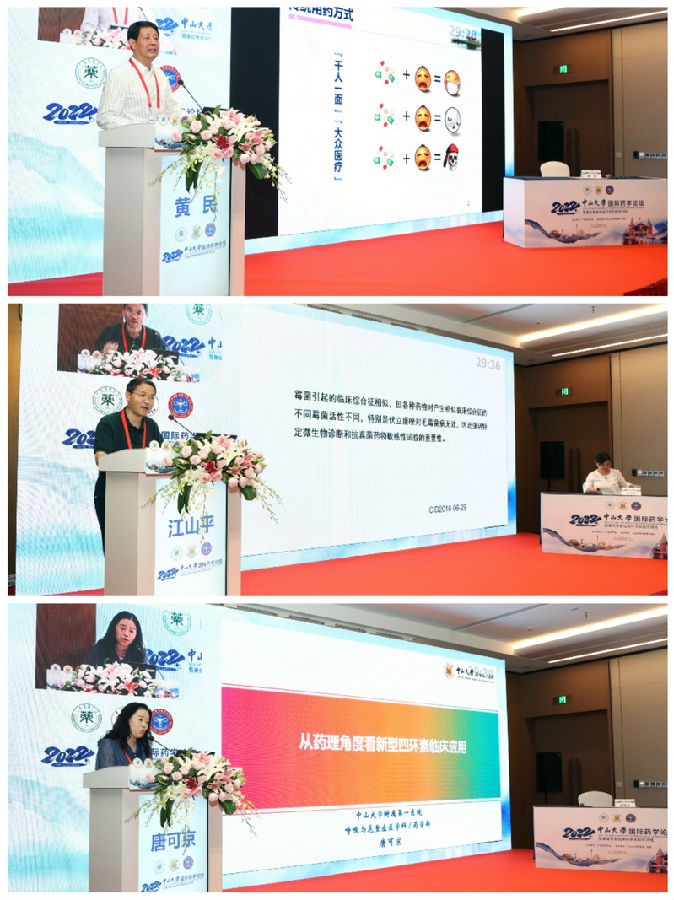 主題論壇聚焦國(guó)際藥學(xué)前沿動(dòng)態(tài)。華中科技大學(xué)同濟(jì)醫(yī)學(xué)院附屬協(xié)和醫(yī)院張玉教授介紹了“1+3”的戰(zhàn)略布局,分享了協(xié)和醫(yī)院成功打造醫(yī)學(xué)中心的實(shí)踐與探索經(jīng)驗(yàn)。中山大學(xué)藥學(xué)院黃民教授從藥物反應(yīng)個(gè)體差異的原因切入,介紹了個(gè)體化用藥的意義以及目前研究工作進(jìn)展。澳洲南澳大學(xué)Alan Boddy教授以國(guó)際化視野就抗腫瘤藥物的精準(zhǔn)用藥展開了國(guó)際前沿動(dòng)態(tài)的分享與解讀。南京大學(xué)醫(yī)學(xué)院附屬金陵醫(yī)院施毅教授以其豐富的臨床經(jīng)驗(yàn),展示了碳青霉烯類耐藥革蘭氏陰性桿菌感染的現(xiàn)狀以及抗菌藥物的合理應(yīng)用。中山大學(xué)孫逸仙紀(jì)念醫(yī)院江山平教授強(qiáng)調(diào)了特定微生物診斷和抗真菌藥物敏感性試驗(yàn)對(duì)抗真菌藥物的臨床應(yīng)用選擇的重要性。中山大學(xué)附屬第一醫(yī)院唐可京教授從藥理學(xué)角度分析了新型四環(huán)素藥物的獨(dú)特優(yōu)勢(shì),為醫(yī)療工作者和患者帶來更多選擇。北京大學(xué)第三醫(yī)院趙榮生教授生動(dòng)講述了用藥指南制定過程中如何系統(tǒng)分析研究證據(jù),以獲得國(guó)際認(rèn)可。