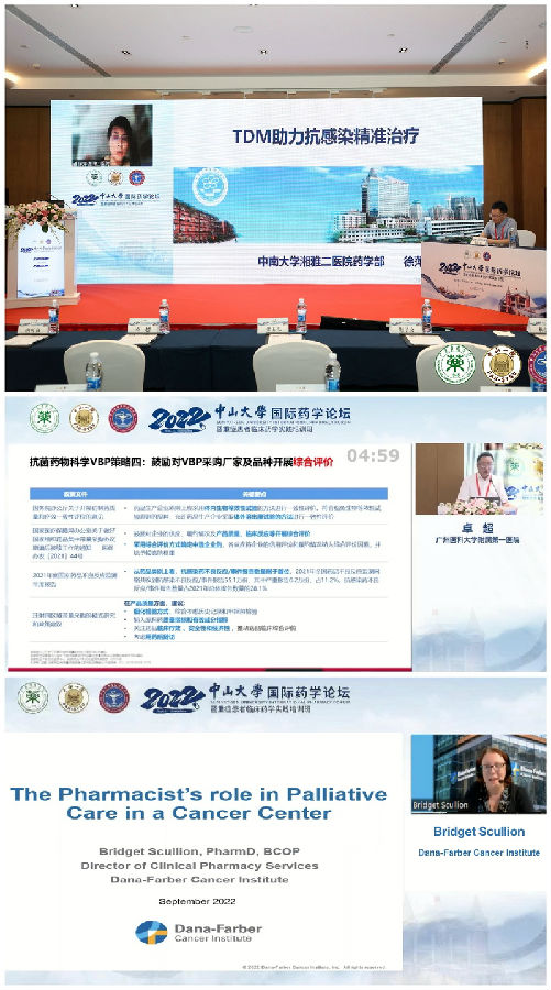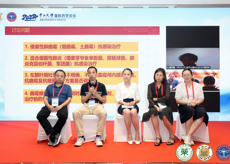 “抗感染藥學(xué)”分論壇。第一位講者來自哈佛Dana-Farber Cancer Institute的Bridget Scullion教授,她為大家?guī)砹藝?guó)外臨床藥師在緩和醫(yī)療中的作用思考和經(jīng)驗(yàn),從多個(gè)角度為我國(guó)緩和醫(yī)療臨床藥學(xué)的發(fā)展帶來了啟發(fā)和思路。中南大學(xué)湘雅二醫(yī)院徐萍主任介紹了TDM在抗感染治療領(lǐng)域的重要貢獻(xiàn)和相關(guān)的研究進(jìn)展。中山大學(xué)附屬第三醫(yī)院張?zhí)焱兄魅螌⑾冗M(jìn)的理論成果與豐富的經(jīng)驗(yàn)巧妙結(jié)合,詳細(xì)解讀了β-內(nèi)酰胺酶抑制劑復(fù)方制劑相關(guān)的新共識(shí)。廣州醫(yī)科大學(xué)附屬第一醫(yī)院卓超主任分享了在耐藥及VBP背景下碳青霉烯抗菌藥物應(yīng)用的思考,強(qiáng)調(diào)對(duì)碳青霉烯規(guī)范應(yīng)用教育的重要性。廣州市第一人民醫(yī)院趙子文主任講解了常見下呼吸道感染疾病的臨床管理指南,為臨床提供新的選擇借鑒。中山大學(xué)附屬第一醫(yī)院曾嘉煒博士結(jié)合國(guó)內(nèi)外CRAB對(duì)抗菌藥的耐藥率數(shù)據(jù)及指南中CRAB治療基本原則與治療藥物等內(nèi)容,介紹了兒童CRAB的抗菌藥物治療進(jìn)展。最后中山大學(xué)附屬第一醫(yī)院夏延哲臨床藥師分享了一例腎移植術(shù)后曲霉感染的病例,并由中山大學(xué)附屬第一醫(yī)院劉紫錳、傅茜、廖康、何秋毅,中山大學(xué)孫逸仙紀(jì)念醫(yī)院余曉霞,中山大學(xué)附屬第五醫(yī)院梁嘉碧等6位醫(yī)學(xué)、藥學(xué)、檢驗(yàn)專家對(duì)該病例的侵襲性肺曲霉抗感染治療、混合細(xì)菌性肺炎抗感染治療以及治療方案調(diào)整等問題進(jìn)行了熱烈討