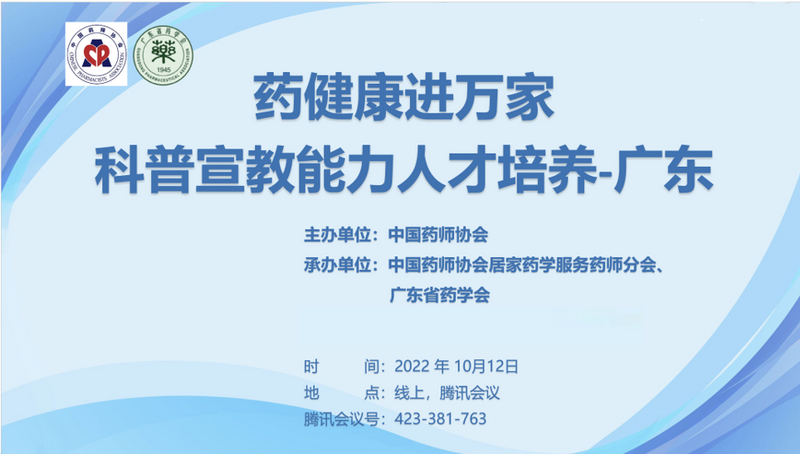 2022年10月12日,由廣東省藥學(xué)會和中國藥師協(xié)會居家藥學(xué)服務(wù)藥師分會共同承辦的“藥健康進(jìn)萬家--科普宣教能力人才培養(yǎng)”廣東省選拔賽如期舉行。