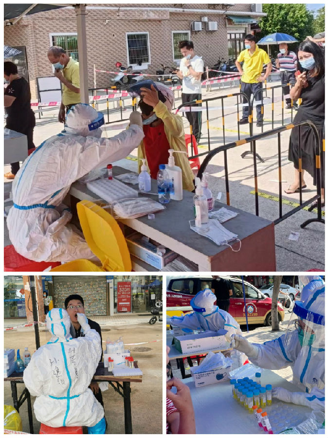 蔡曉蕓、葉若寒和共產(chǎn)黨員李雪鳳都是派往院本部進(jìn)修學(xué)習(xí)的深汕院區(qū)藥師,疫情期間,他們除了做好日常本職工作以外,犧牲了許多休息時(shí)間,積極響應(yīng)醫(yī)院和上級(jí)抗疫工作號(hào)召,主動(dòng)報(bào)名加入院本部核酸采樣隊(duì)伍,前往海珠區(qū)各街道助力核酸采樣工作。不管晴天雨天,穿著密不透風(fēng)的防護(hù)服,戴著緊繃的口罩,連續(xù)好幾個(gè)小時(shí)重復(fù)著同樣的動(dòng)作,“一方有難,八方支援”,彰顯白衣天使的職業(yè)擔(dān)當(dāng)與使命!
