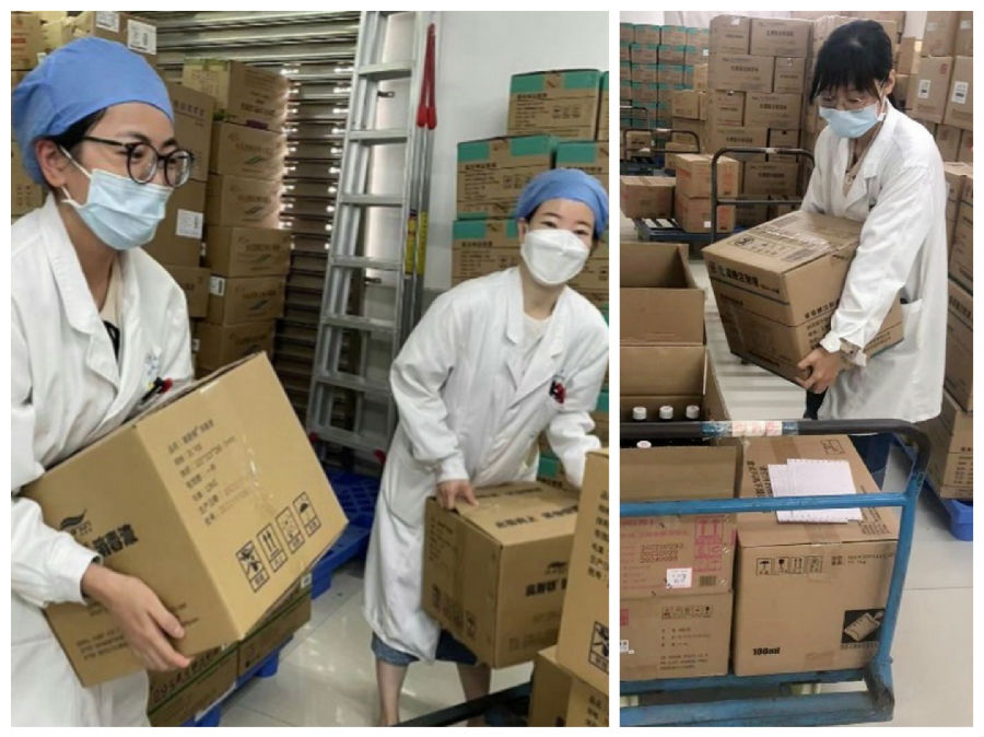 三、高效騰挪、設置定點救治醫(yī)院。為有序分流和救治患者,11月14日收到上級通知,必須48小時內(nèi)將嶺南院區(qū)騰空,設置成定點救治醫(yī)院。蘿崗藥劑科分管主任及組長隨即啟動應急方案,與各病區(qū)醫(yī)生護長召開會議、建立緊急工作溝通機制。同時,藥劑科第一時間進行部門臨時整合,重組為調(diào)劑組、配送組、夜班組,協(xié)調(diào)藥品運送事宜,保證藥品配送企業(yè)、藥庫、藥房、病區(qū)鏈條完整,確保24小時內(nèi)能將藥品配送到科室,全力滿足臨床用藥需求。14日晚,為保障隔離病區(qū)消毒用品供給,靜配中心藥師在人力不足情況下親自搬運箱裝消毒用品。15日凌晨4:30分,藥房在接收到隔離病區(qū)醫(yī)生口頭醫(yī)囑后,立即啟動應急方案,準備、提供隔離區(qū)患者用藥;制劑室為嶺南醫(yī)院綜合隔離病區(qū)醫(yī)療隊提供第一批院內(nèi)制劑以及醫(yī)護人員閉環(huán)管理常用藥品。