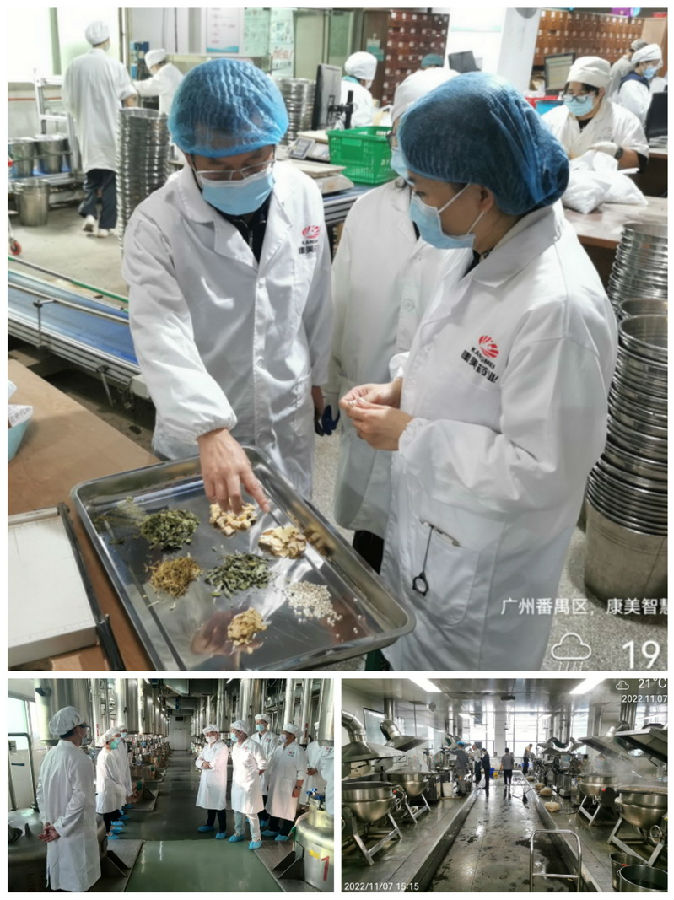藥學(xué)部主任李麗明主任藥師、劉若軒副主任藥師作為市級(jí)中醫(yī)藥工作小組中的中藥質(zhì)控組成員,負(fù)責(zé)做好各企業(yè)中藥質(zhì)量、煎煮、配送等質(zhì)量把控。對(duì)協(xié)定預(yù)防方的生產(chǎn)質(zhì)量負(fù)責(zé),嚴(yán)格落實(shí)協(xié)定預(yù)防方代煎標(biāo)準(zhǔn),深入精選企業(yè)至信藥業(yè)、大翔藥業(yè)、香雪藥業(yè)、廣藥集團(tuán)采芝林藥業(yè)和康美藥業(yè)等5家公司代煎中心全覆蓋督導(dǎo),全面了解企業(yè)產(chǎn)能,現(xiàn)場(chǎng)檢查企業(yè)藥材質(zhì)量、中藥調(diào)劑、中藥制作、運(yùn)輸全過(guò)程。對(duì)協(xié)定預(yù)防方從中藥飲片的質(zhì)量到代煎及配送各關(guān)鍵環(huán)節(jié)全程把關(guān),確保各企業(yè)代煎藥液同質(zhì)化。從11月7日凌晨緊急啟動(dòng)中醫(yī)藥干預(yù)項(xiàng)目開(kāi)始,中藥質(zhì)控組不辭勞苦主動(dòng)出擊,擴(kuò)大企業(yè)加工能力,截至11月20日,協(xié)定預(yù)防方已基本全覆蓋海珠、白云、荔灣等重點(diǎn)片區(qū)及隔離酒店需求,為新一輪疫情防控作出貢獻(xiàn)。