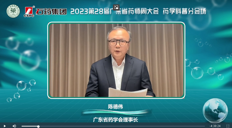 廣東省藥學(xué)會陳德偉理事長專門給藥學(xué)科普分會場發(fā)來視頻祝賀、鼓勵